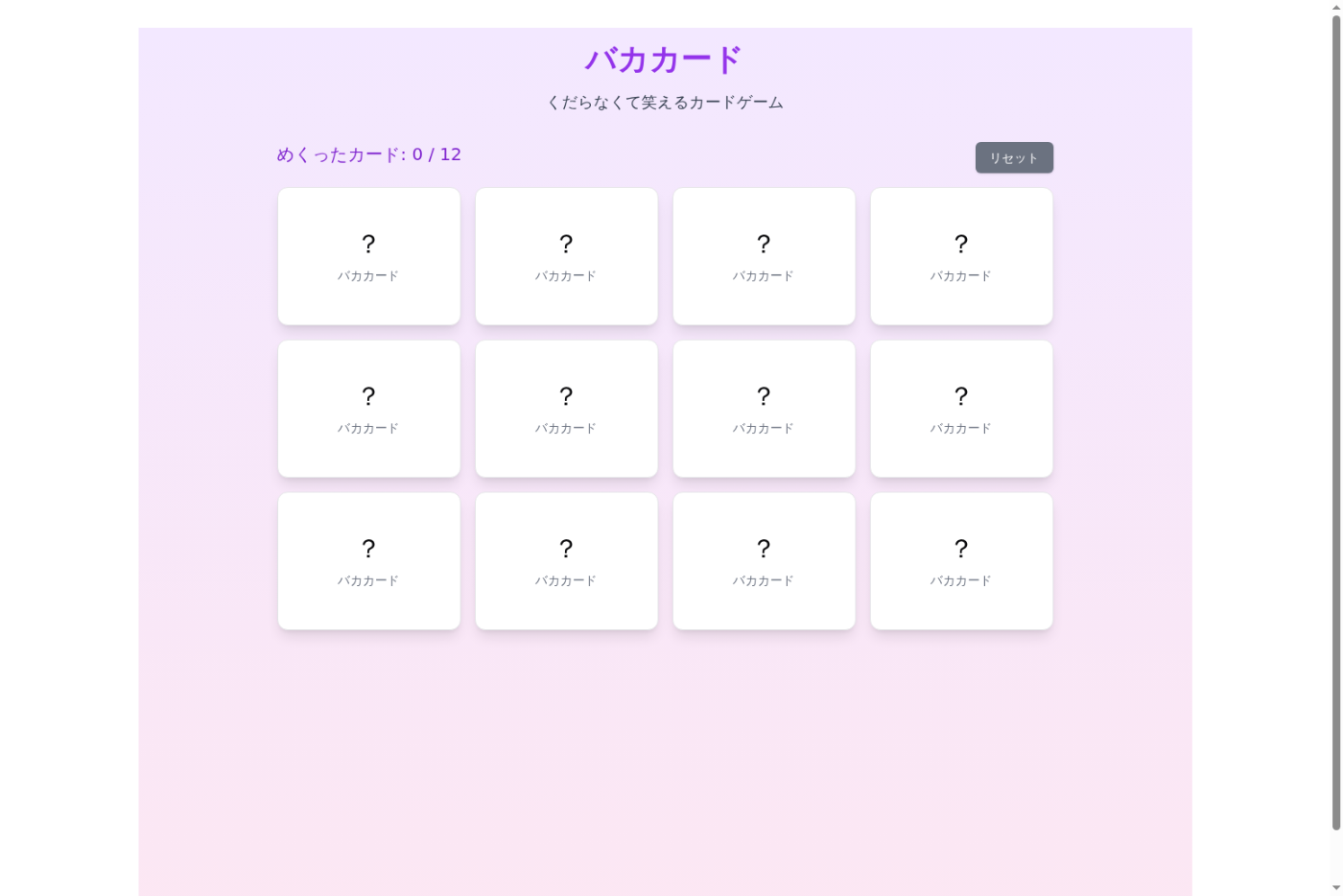バカカードゲームは、カードをめくって書かれた指示に従うだけの単純なゲームです。友達と一緒に遊ぶと盛り上がること間違いなし!