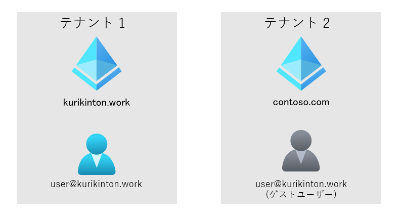 例えば、user が kurikinton.work 上の VM を利用するときは kurikinton.work の Azure ポータルに、contoso.com の VM を利用するときは contoso.com の Azure ポータルに入る必要があります。
