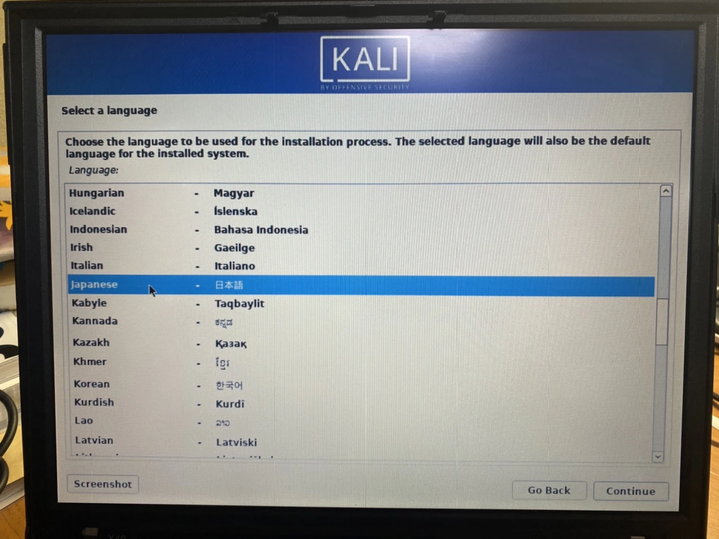 [6]ノートパソコンにKali Linux 2021.4をインストール(手順)