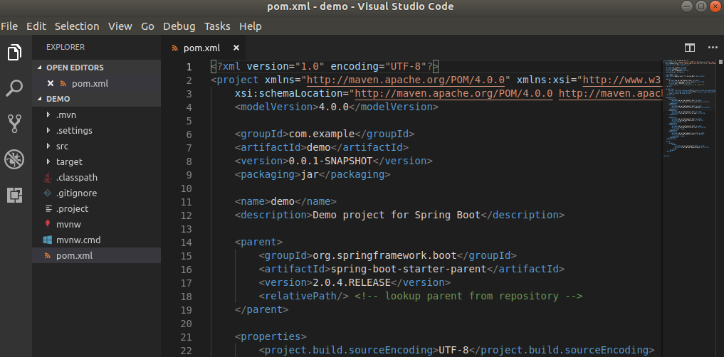 pom.xmlというファイルがVSCodeの左側に表示されているはずなのでそいつをダブルクリックして開きます。