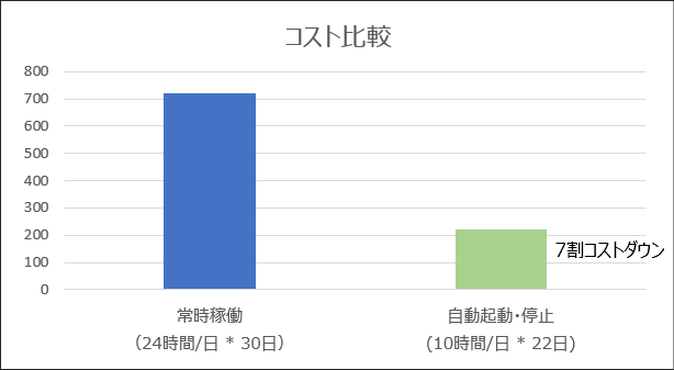 1ヶ月の稼働日数を22日と仮定すると、毎日定時(8:30から18:30まで)に起動・停止させることで、1ヶ月で合計500時間 (720 - 22*10)を節約できます。つまり、OCPU per hourに関連する費用は、停止なしの場合から69.4%(約7割)も節約できることになります。これは無視できない大きな差異です。