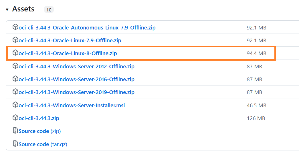 インストーラー・ファイル名: oci-cli-3.44.3-Oracle-Linux-8-Offline.zip