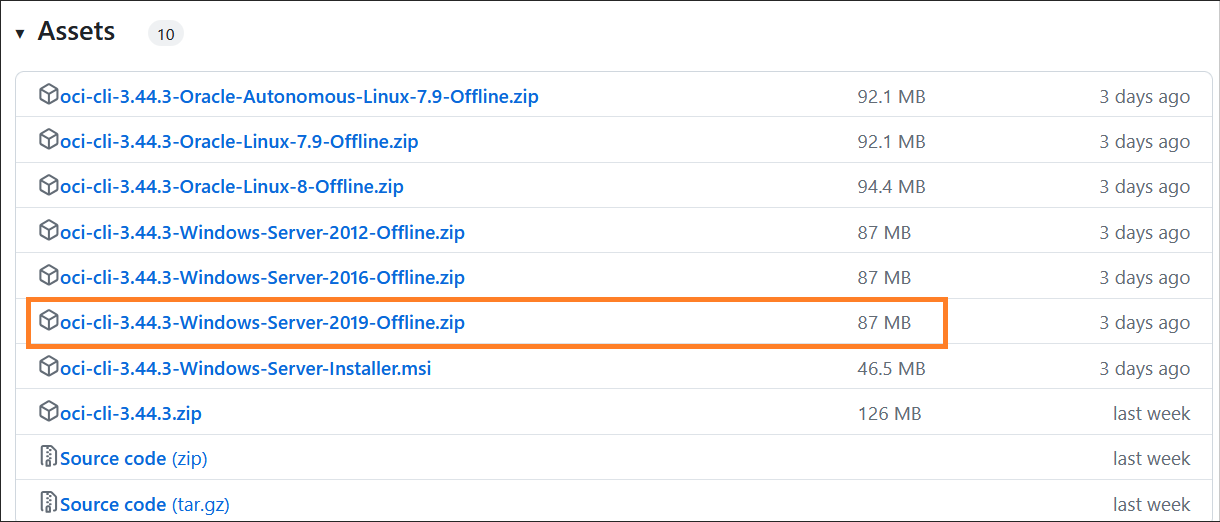 インストーラー・ファイル名: oci-cli-3.44.3-Windows-Server-2019-Offline.zip