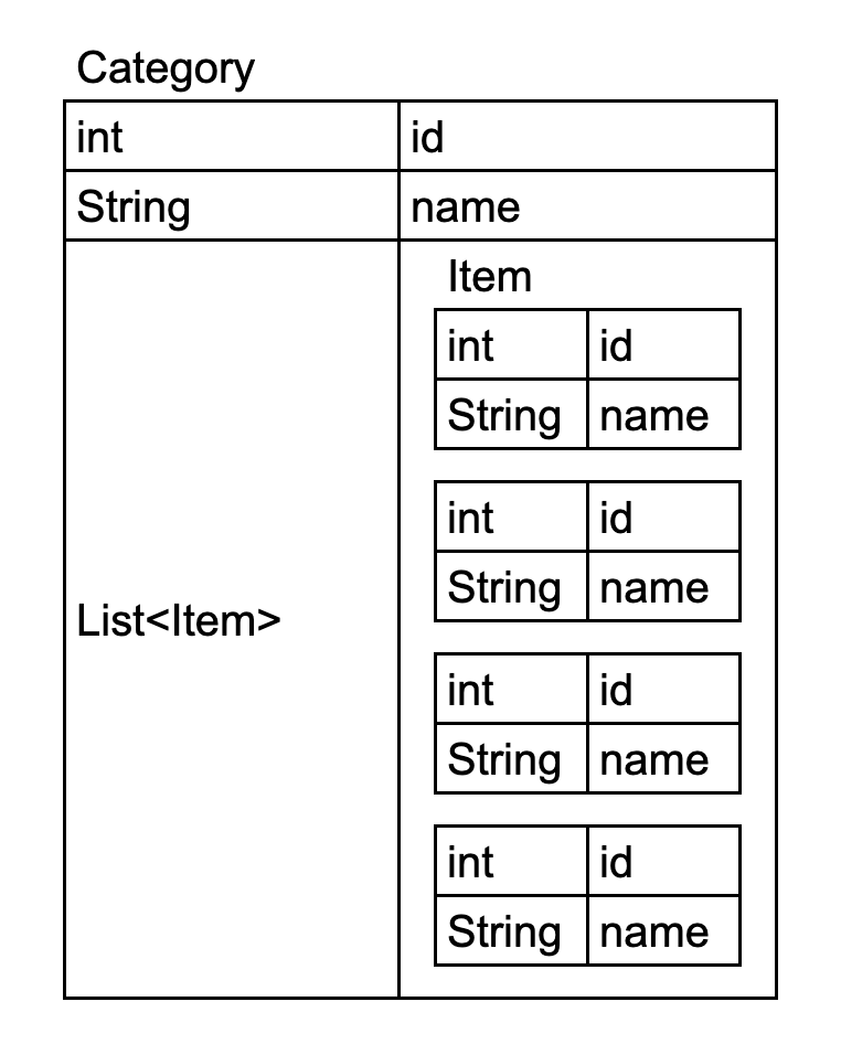 categoriesテーブルとitemsテーブルを結合して、Categoryオブジェクトを作成する。
