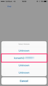 で、最後にいれたのはfindってボタン押したらKonashi探してきてねってやつ。が、Konashi find