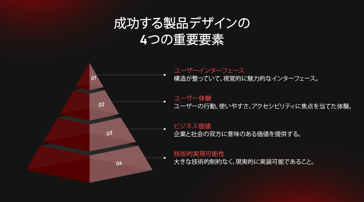 製品デザインとは、ユーザーのニーズを満たしながら、企業の長期的なビジネス目標を達成するために、製品を継続的に改善する反復的なプロセスです。