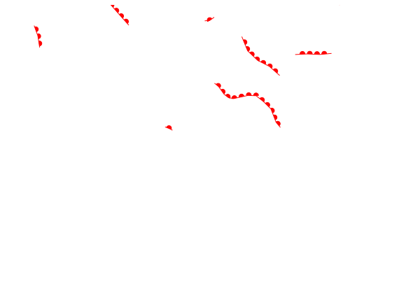 この天気図データは画像形式(ラスタ形式)です。ピクセルの値が赤・青・紫・オレンジのものを抜き出すと、以下のように気象要素のみを抜き出すことができます。