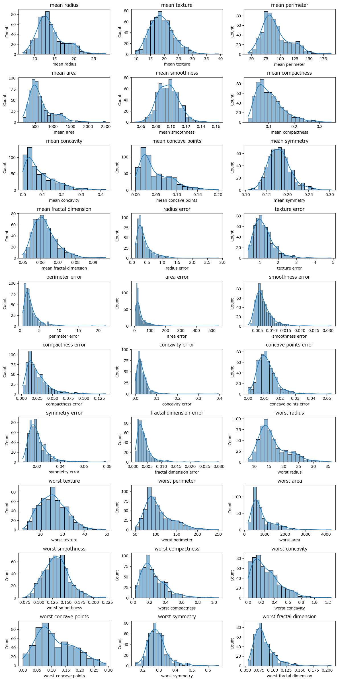 今回使用する乳がんのデータセットは、ウィスコンシン大学の乳がん診断データセット(Wisconsin Diagnostic Breast Cancer, WDBC)と呼ばれています(参照)。