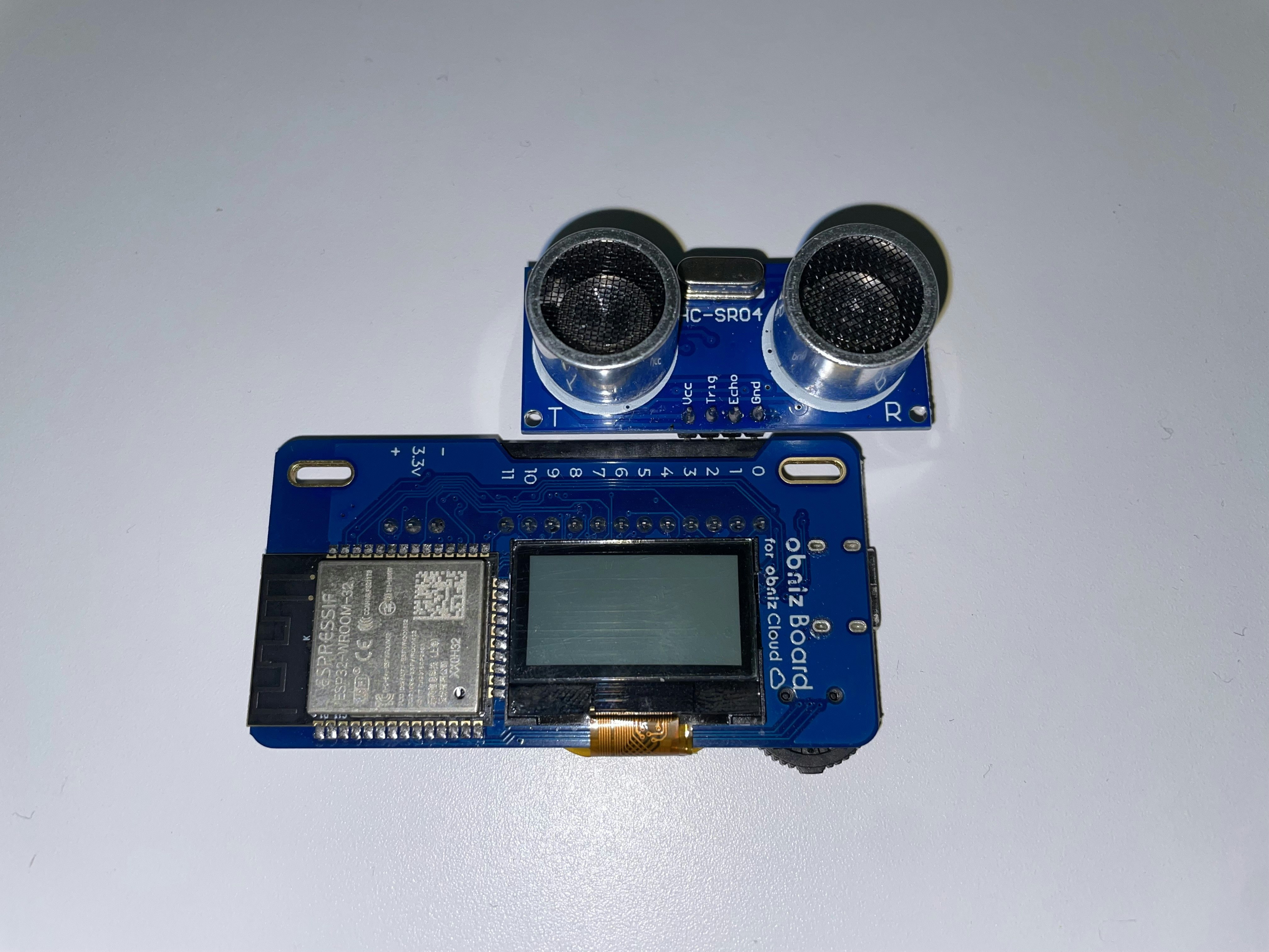 obnizに超音波センサーを繋いで、一定の距離より近くを通ると音声ファイルが自動的に流れるものを作成しました。