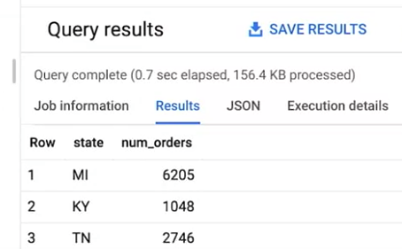 まず、簡単な COUNT クエリを試してみましょう。 FROM 構文で、Orders テーブルと Warehouse テーブルを JOIN します。 この場合は SELECT で始めて 州の数をカウントします。