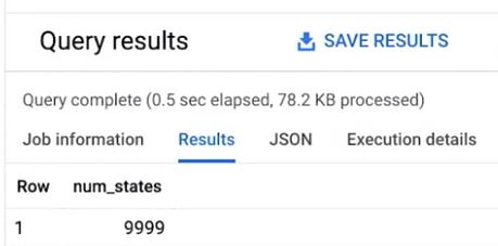 このクエリを実行して、何が得られるか 見てみましょう。 いや、ちょっと違うようですね。 このクエリは 9,000 以上の州を返していますが これは州を含む行を 1 つ 1 つ数えているからです。 しかし、ここでやりたいのは 個々の州を数えることです。
