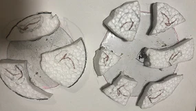 次に発泡スチロール板と下敷きで、球の進路を振り分ける回転体を作っていきます。小さいのと大きいの2個つくりました。