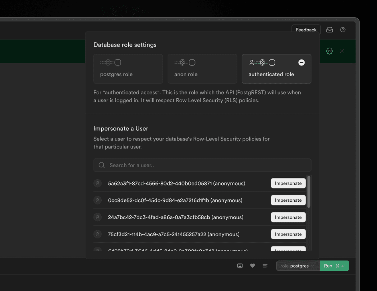 その結果、匿名ユーザーには、公開ロールおよび認証ロールに適用される RLS ポリシーが適用されます。お客様のデータへのアクセスが必要に応じて制限されるように、RLS ポリシーを見直すことを強くお勧めします。