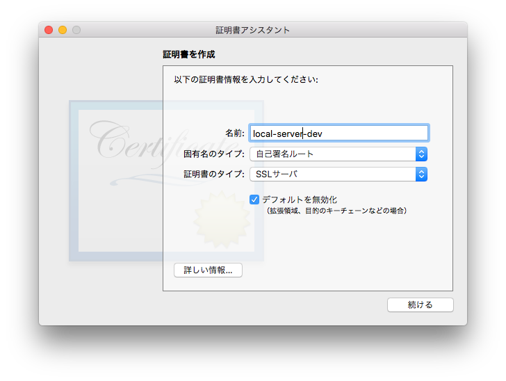 キーチェーンアクセスで自己証明書を作成しローカルSSLサーバーを立ち上げる