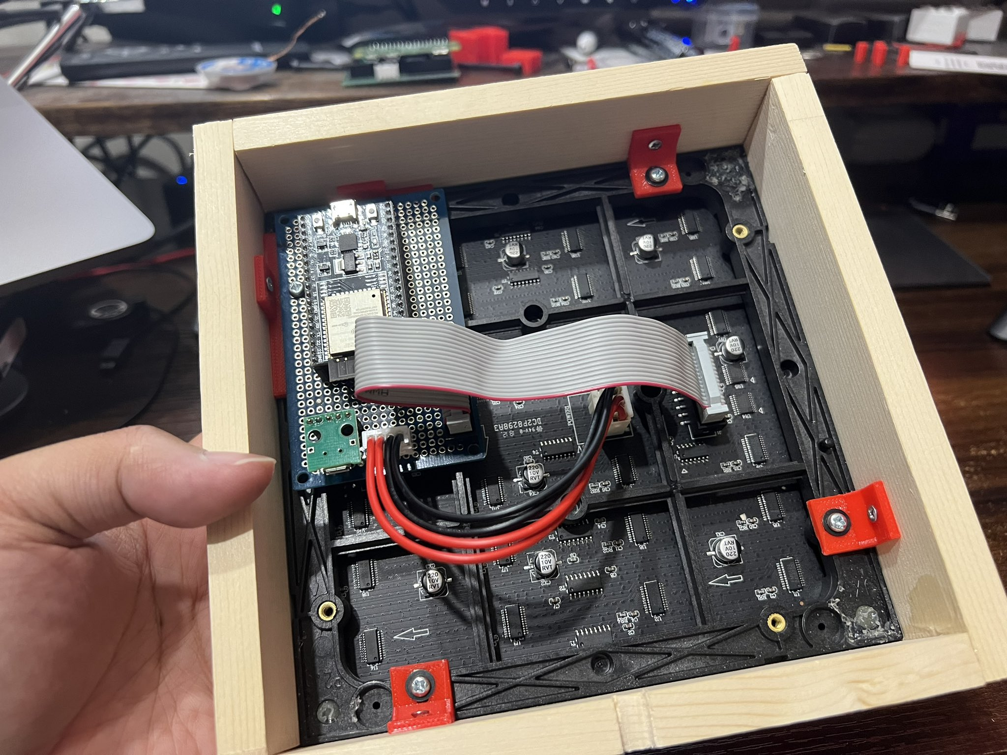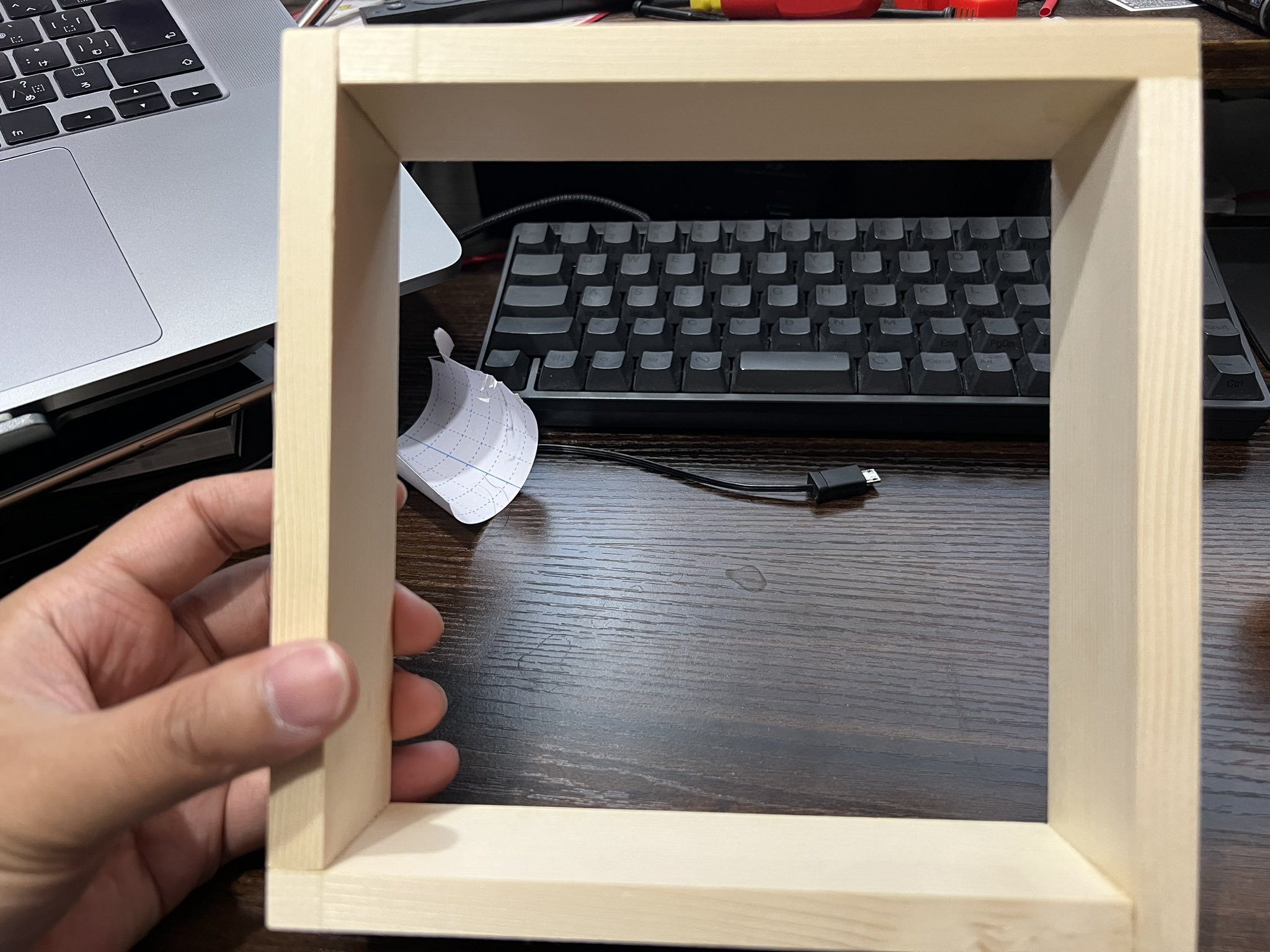 3Dプリンターで、LEDパネルと木材のガワをくっつけるアタッチメントを出力