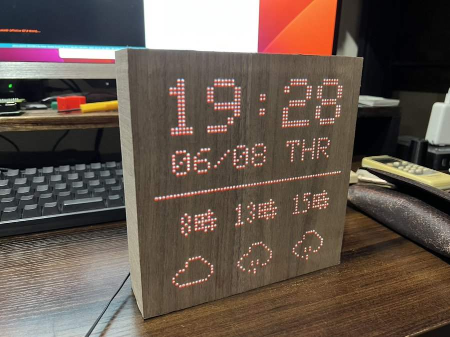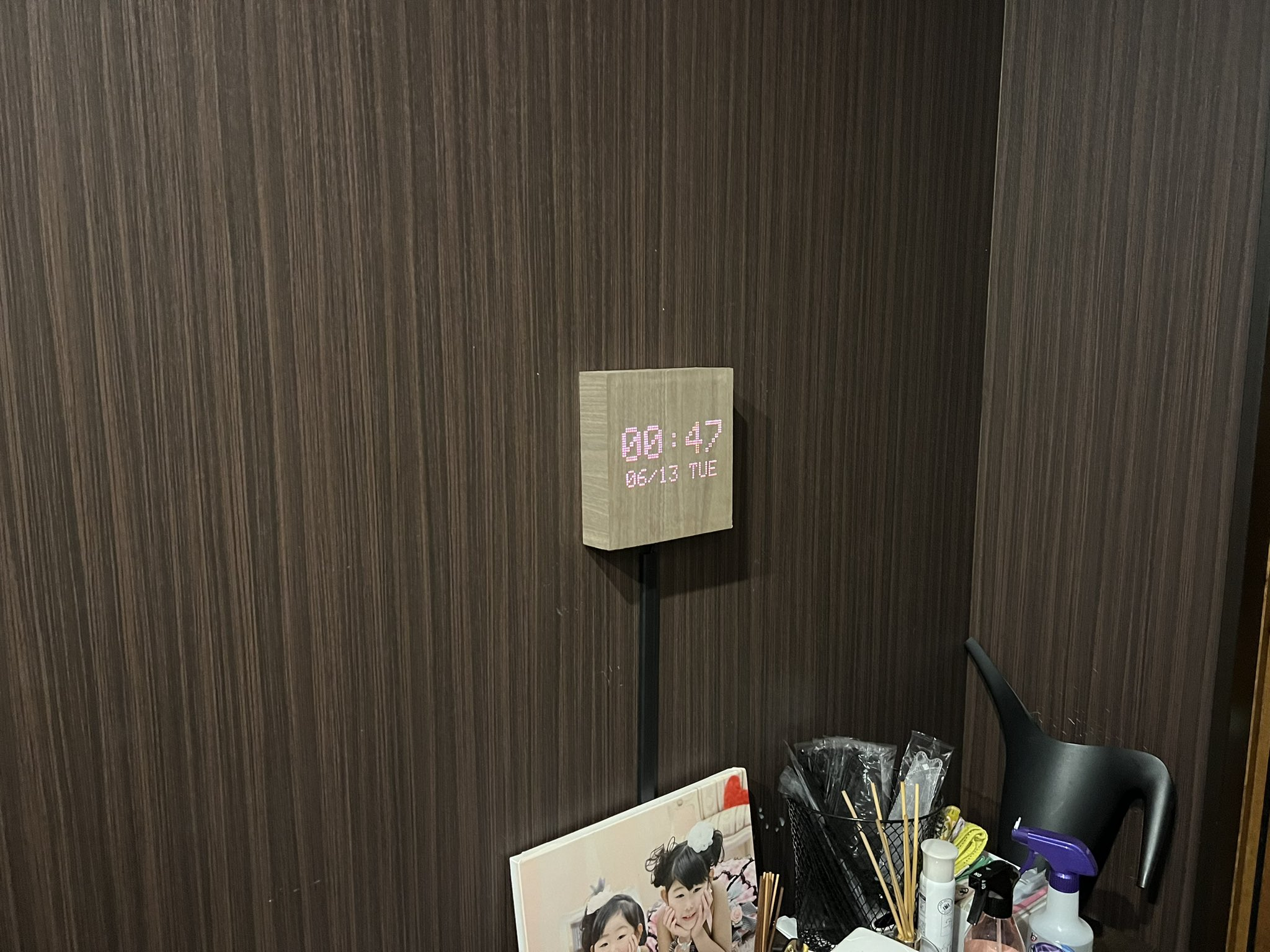 配送ミス品のLEDパネル(端が欠けている・・)を使って玄関前のバタバタを解消する時計を作ってみました。