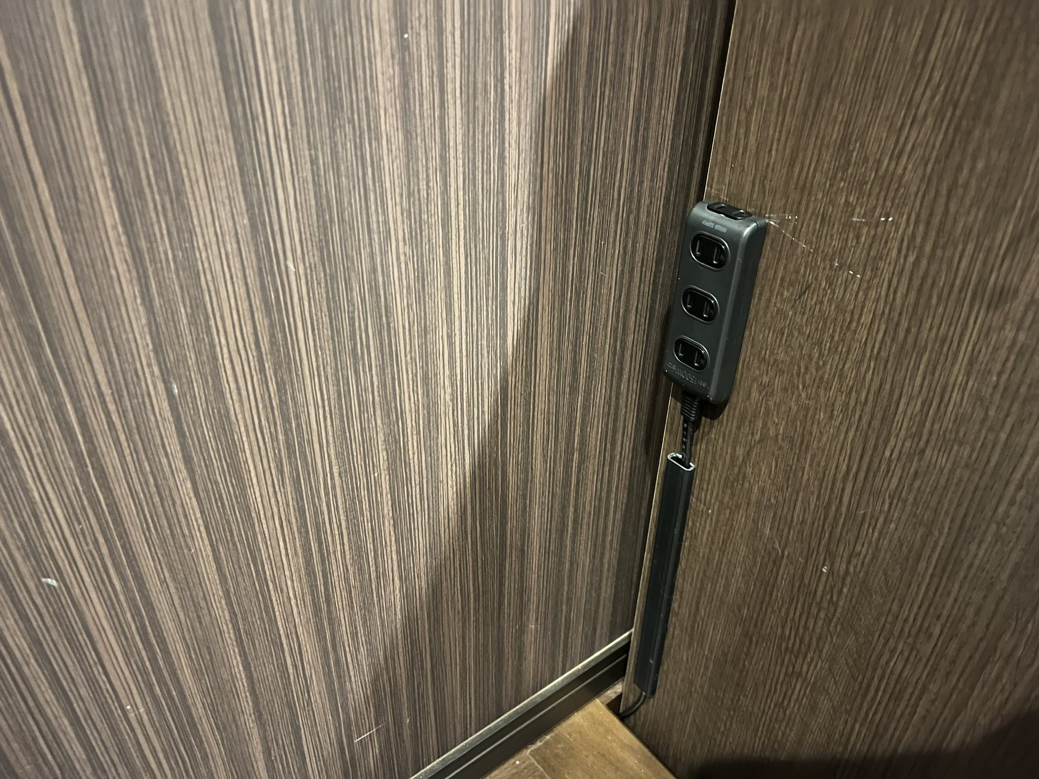 設置予定の壁には電源がないので、逆の壁から延長コードを伸ばします。
