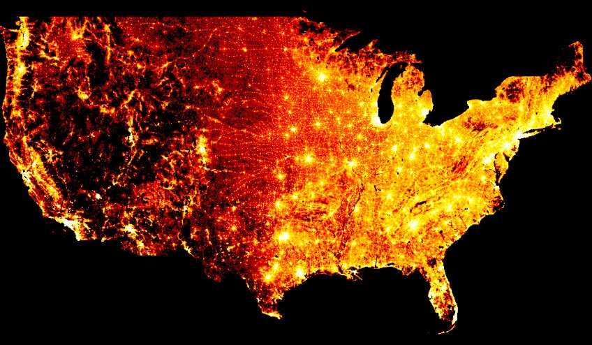 (訳)上記のようなコードを使用するとパラメーターを調整せずに、2010年の国勢調査から3億ポイントのデータ(米国の一人ひとり) をプロットできます。