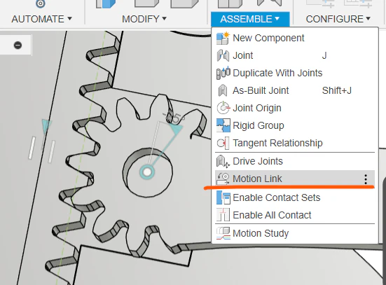 ギヤ同士がかみ合いながら回るようにジョイントリンクを設定します