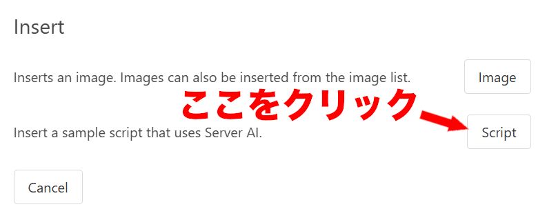 ステップ2:Insertダイアログの「Script」ボタンを押す