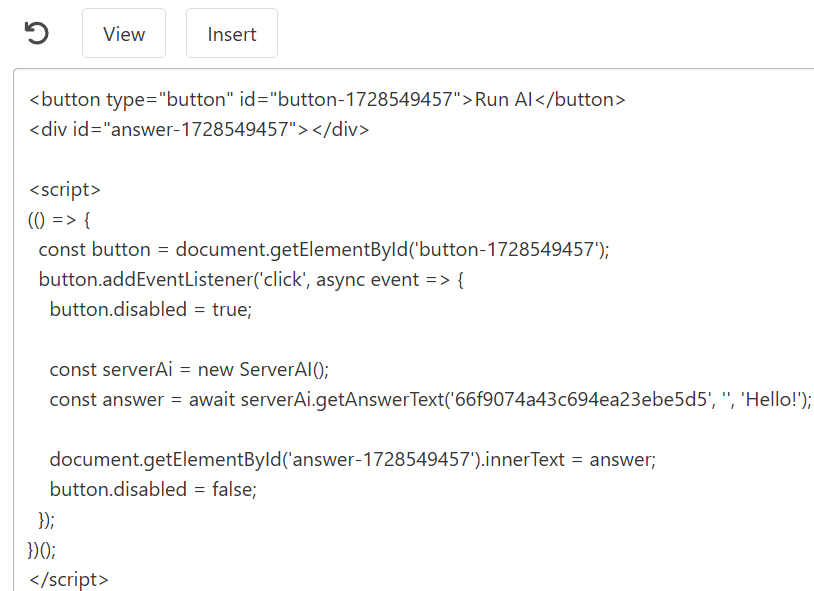 - 下記のテンプレートで挿入されたスクリプトはAIのモデルを呼び出し、その返答を得るコードです。