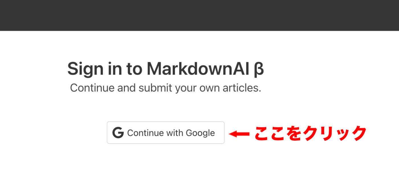 まずは、Markdown AIのサイトにアクセスし、Googelのアカウントを連携しましょう。ボタン一つでサインアップが完了します。