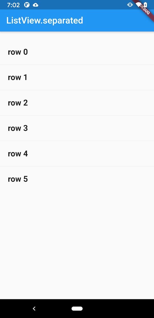 表示されている区切り線の本数と一致しているので、 ListView.separated としては期待通りの表示であることがわかります。