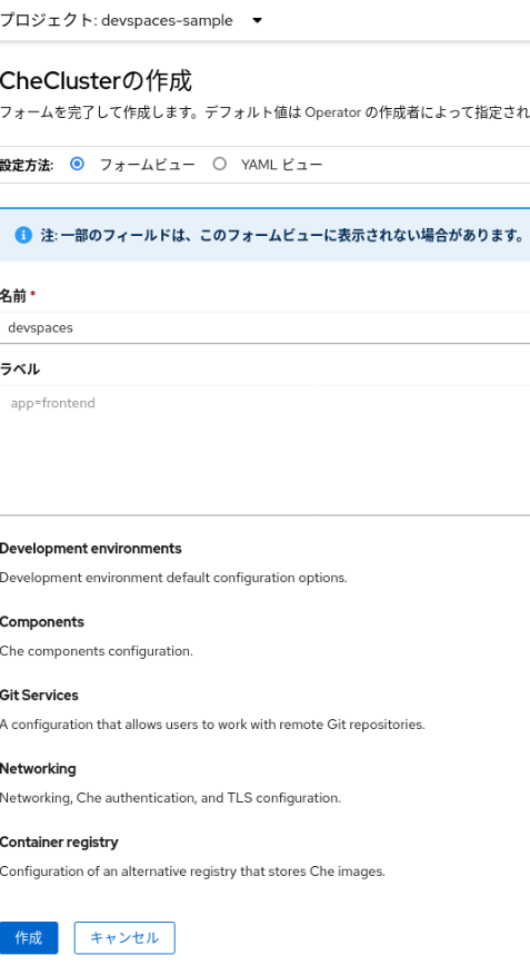 (DevWorkspaceはDevspacesのインストール時にあわせて自動的に追加されます。)