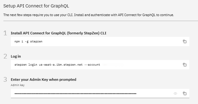 stepzen login us-east-a.ibm.stepzen.net --account XXXXXXXXXXX