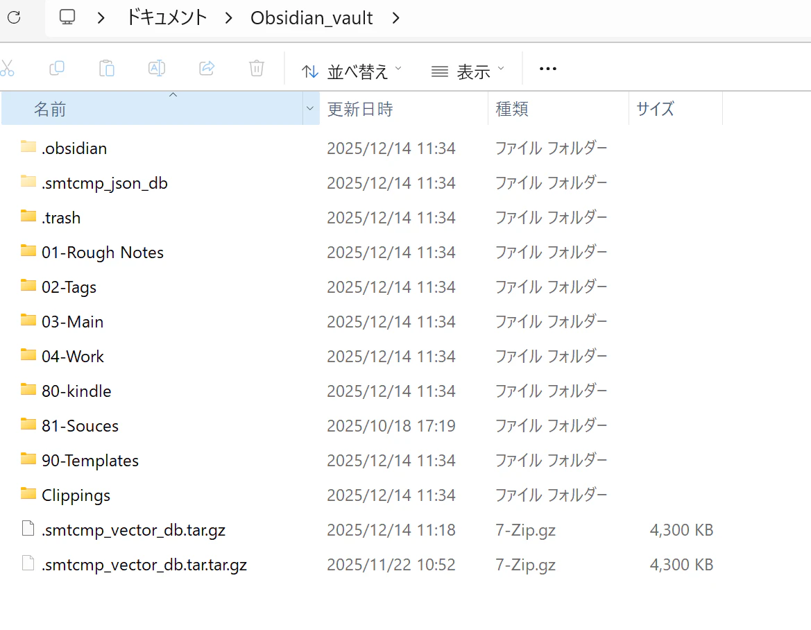 - もともとObsidianを使っていたのでVaultのフォルダはPCに存在している