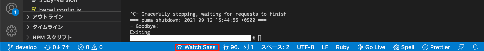 (2)VSCodeのステータスバーにあるWatch Sassをクリックする