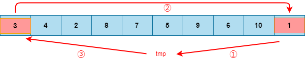 以下の配列を昇順(1,2,…,10)に並べ替えたいと思います。
