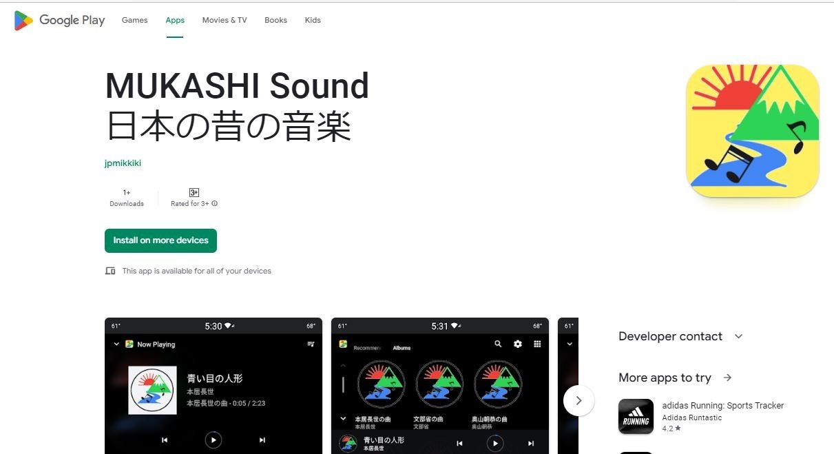 今回は音楽アプリですが、コンテンツは童謡・唱歌の世界様より拝借いたしました。Public Domainとなっている楽曲のみ利用し、配信用に配置しています。(音楽コンテンツをアプリ内に配置することはPlayStoreの配信アプリのデータ上限があり難しいです。)