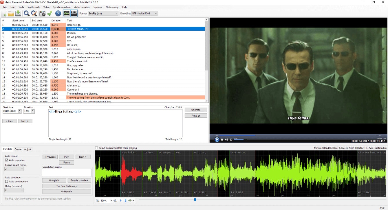 オープンソースのビデオ字幕編集ツールです。Windows向けの無料のビデオ字幕エディターであり、使い始めから機能が豊富で、字幕の作成、調整、同期、翻訳をサポートしています。さらに、自動翻訳、字幕形式の変換、音声認識などの機能も提供しています。