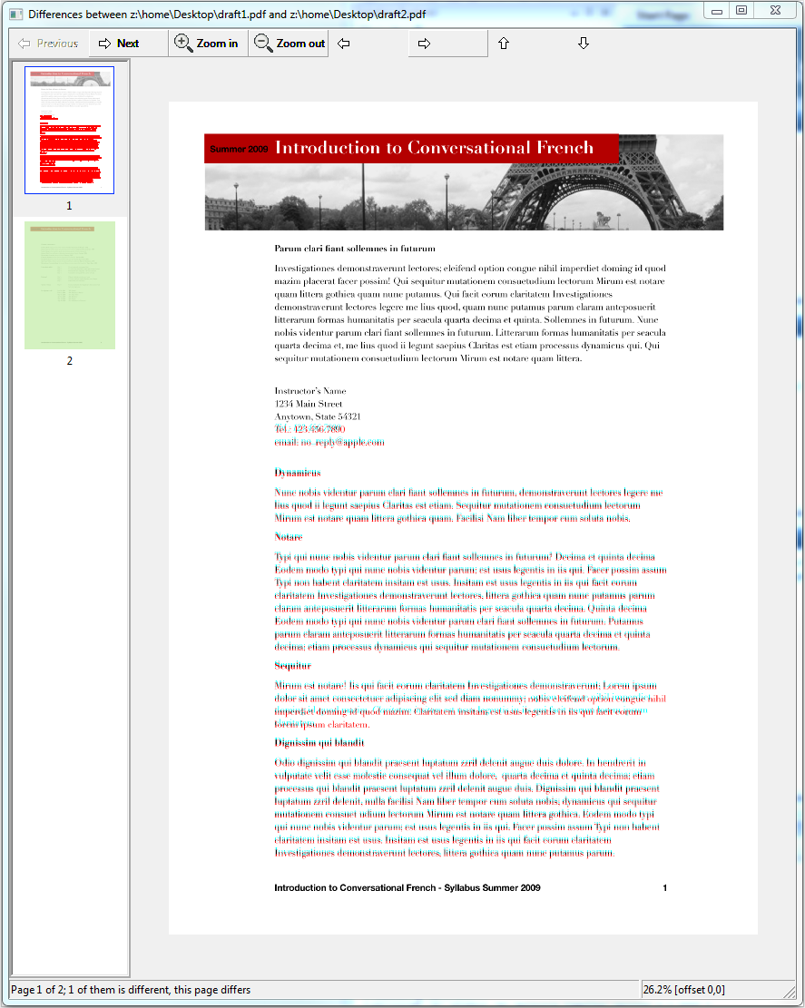 $ diff-pdf --output-diff=diff.pdf a.pdf b.pdf