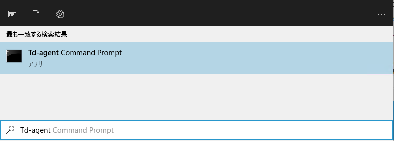 Td-agent Command Prompt を起動します。Td-agent Command Prompt は基本的にはコマンドプロンプト (cmd.exe) そのものです。ただし、td-agent のプログラムのために