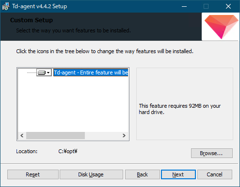 ダウンロードページから、最新の MSI インストーラーをダウンロードします。ここでは td-agent-4.4.2-x64.msi を利用します。