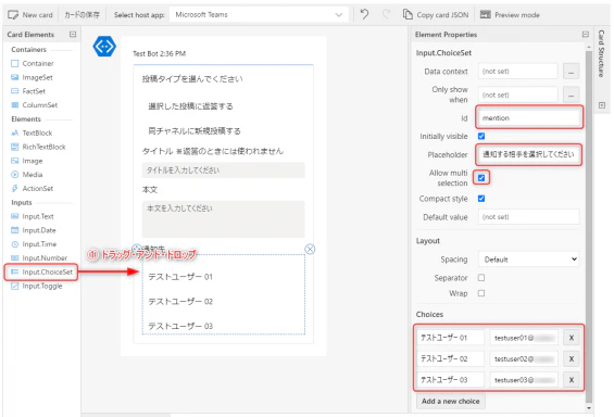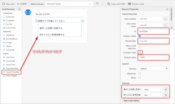Input.ChoiceSet を AdaptiveCard にドラッグ・アンド・ドロップし