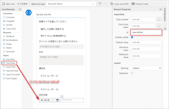 Input.Date を AdaptiveCard にドラッグ・アンド・ドロップし