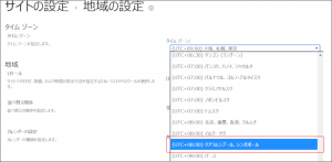 次はサイトの設定 → 地域の設定でタイムゾーンを変更してみます。