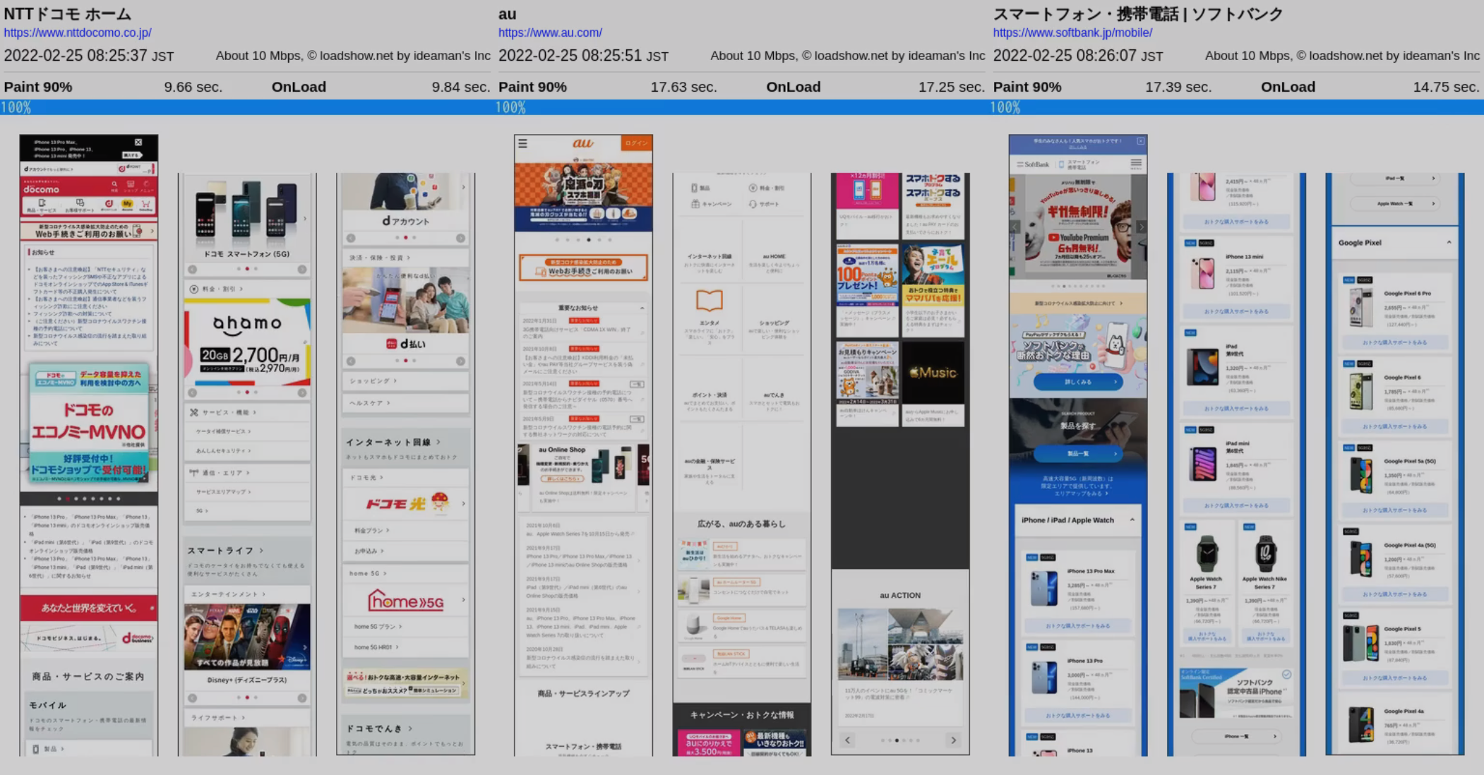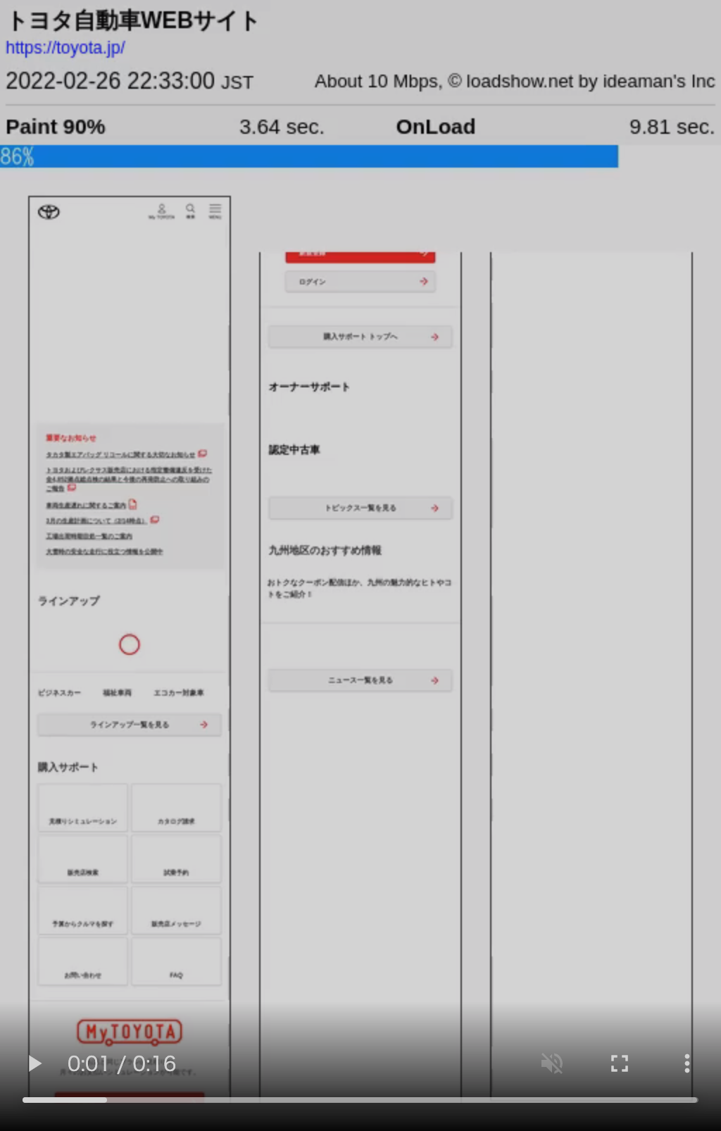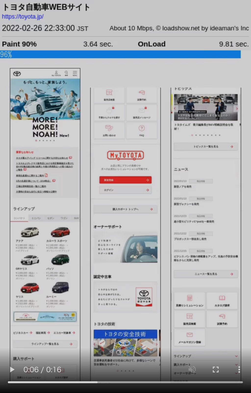 完成の90%まで近いたら必要な情報はおおよそ表示されただろう、ということで90%描画を 表示速度の基準値 としました。