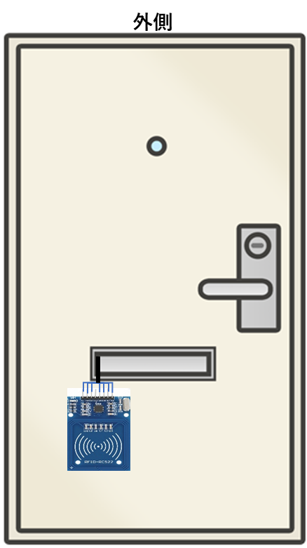 ドアポストの口のところからICタグリーダーを外に出しています。