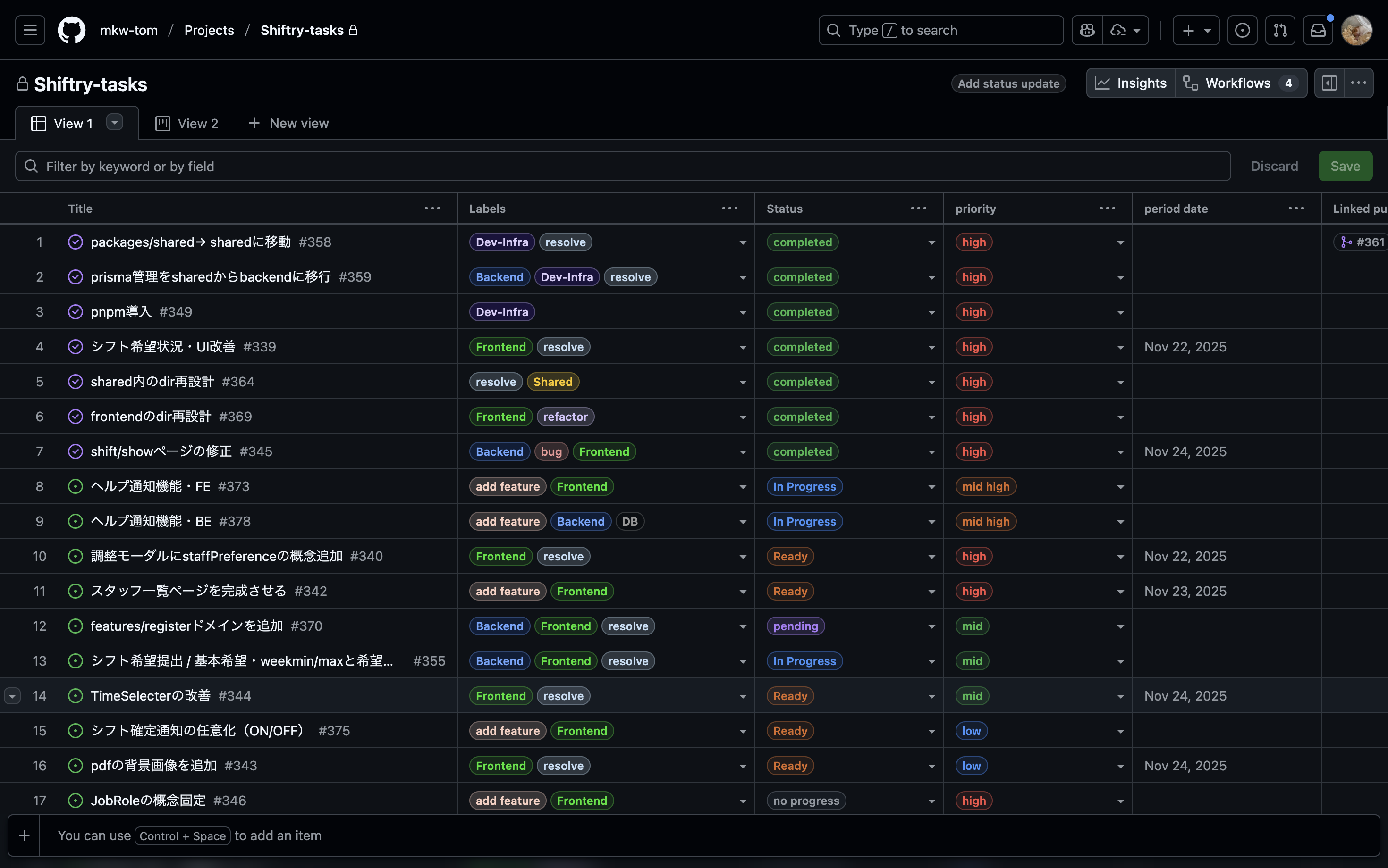 コミット履歴と作業内容の認識を一致させたいと思い、Github Projectでモノレポ環境のissue管理を行っています。
