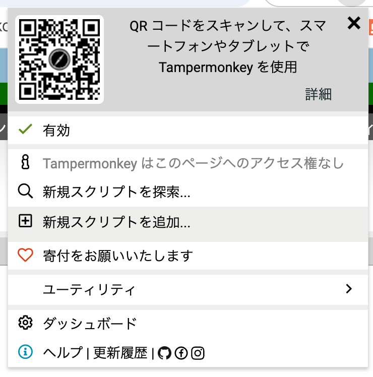 Tampermonkey のアイコンをクリックし「新規スクリプトを追加」をクリックします。