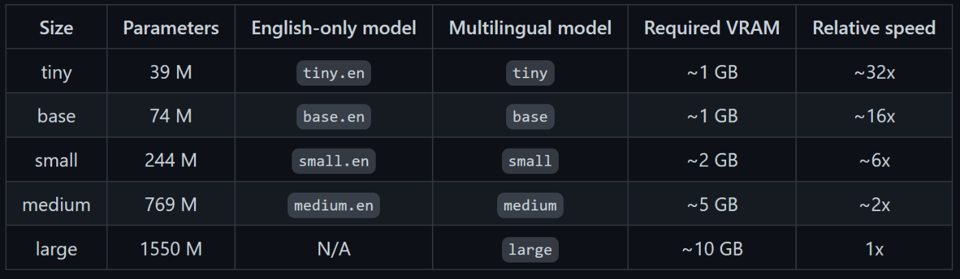 動画内では、「large」モデルを利用しましたが、様々なモデルが存在します。