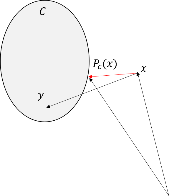 写像$P_C:\mathcal{H}\rightarrow C , \ x\rightarrow P_C(x)$を凸射影という。