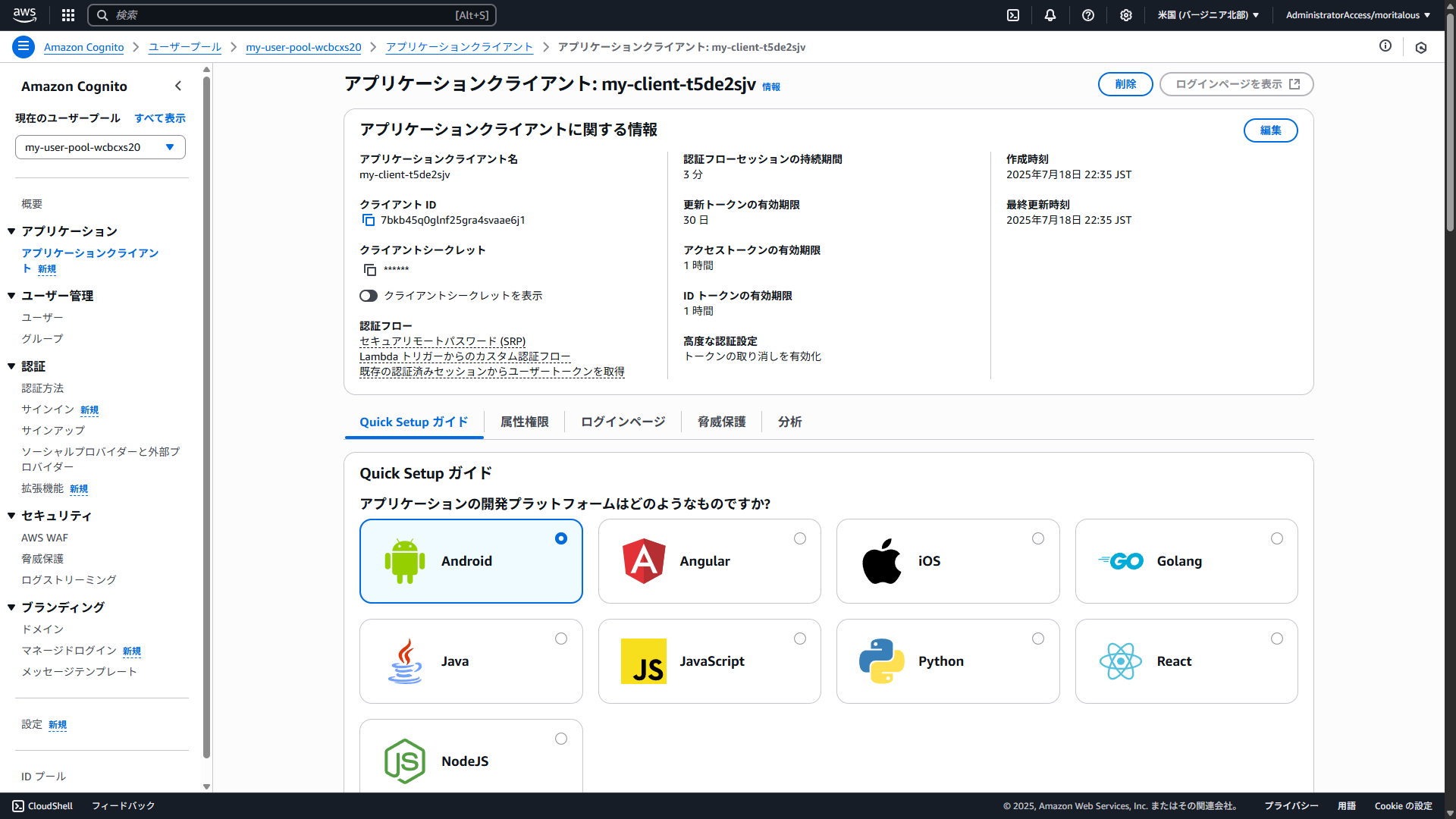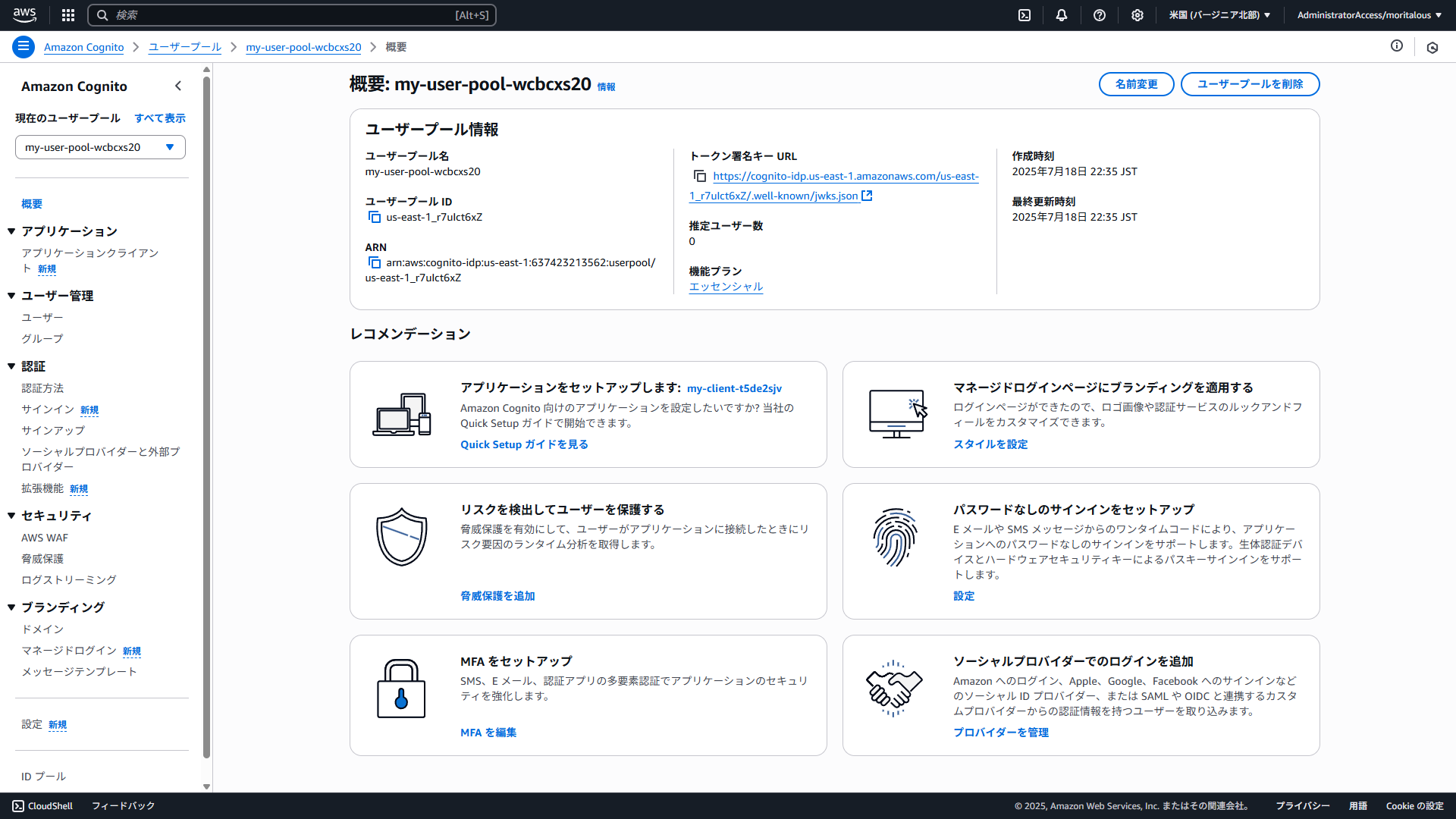 しれっとデフォルト設定で進めてきましたが、実はAmazon Cognitoが作成されていまして、認証機能はCognitoが担当しています。