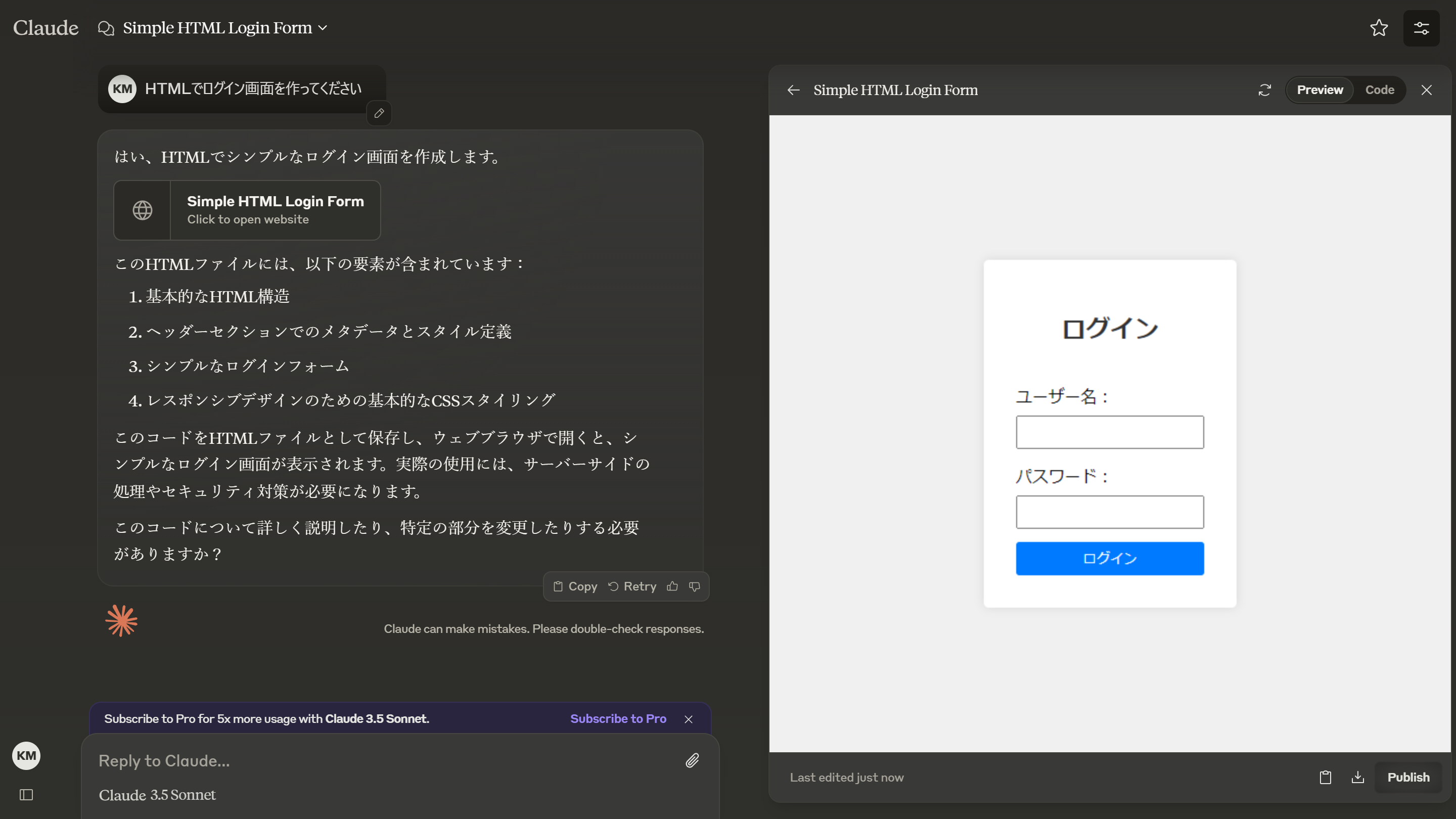 Claudeが作ってくれたHTMLを貼り付けてみましょう