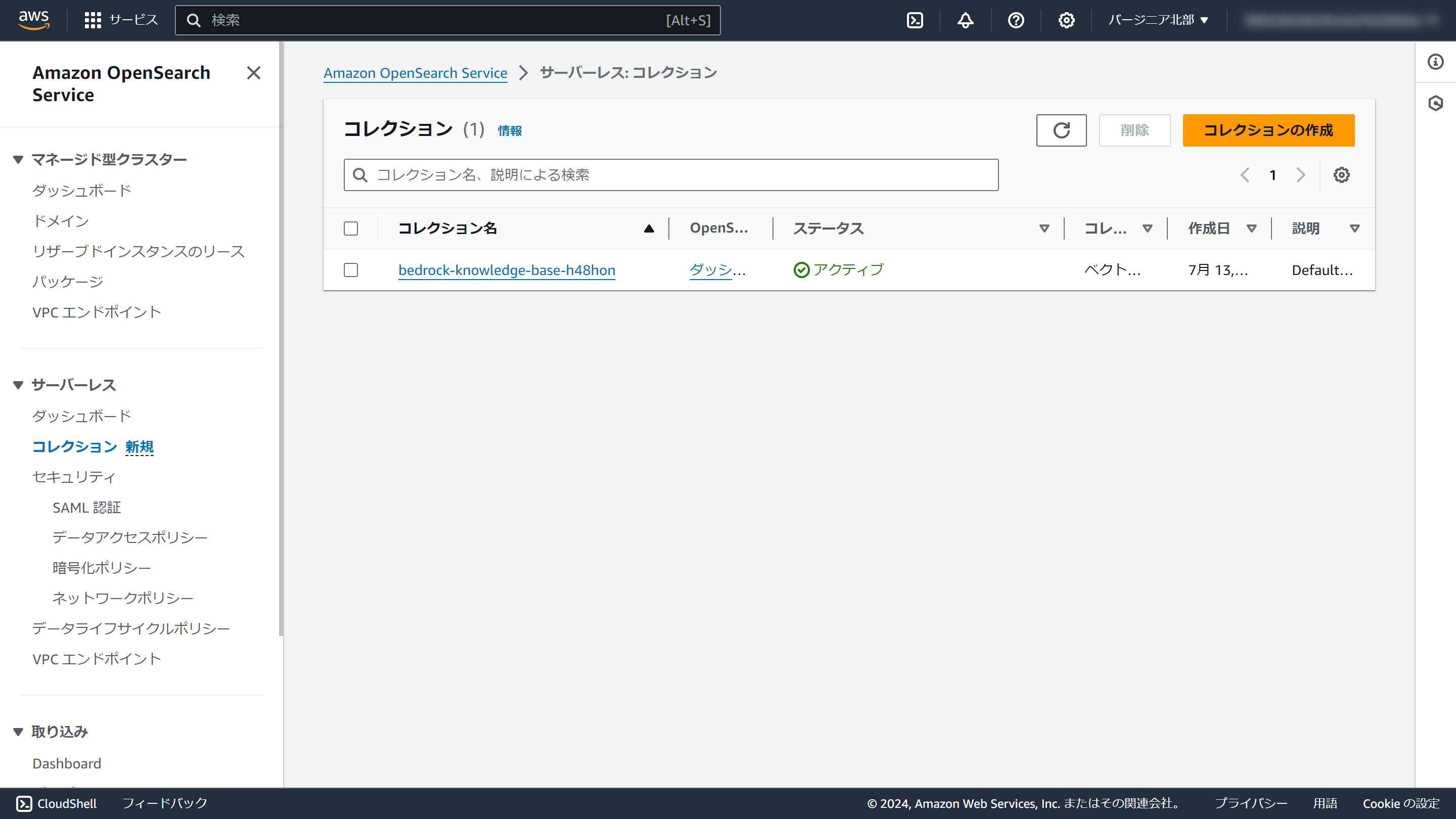 とてもお手軽なのですが、複数のナレッジベースを構築すると、毎回OpenSearch Serverlessのコレクションが作成されます。