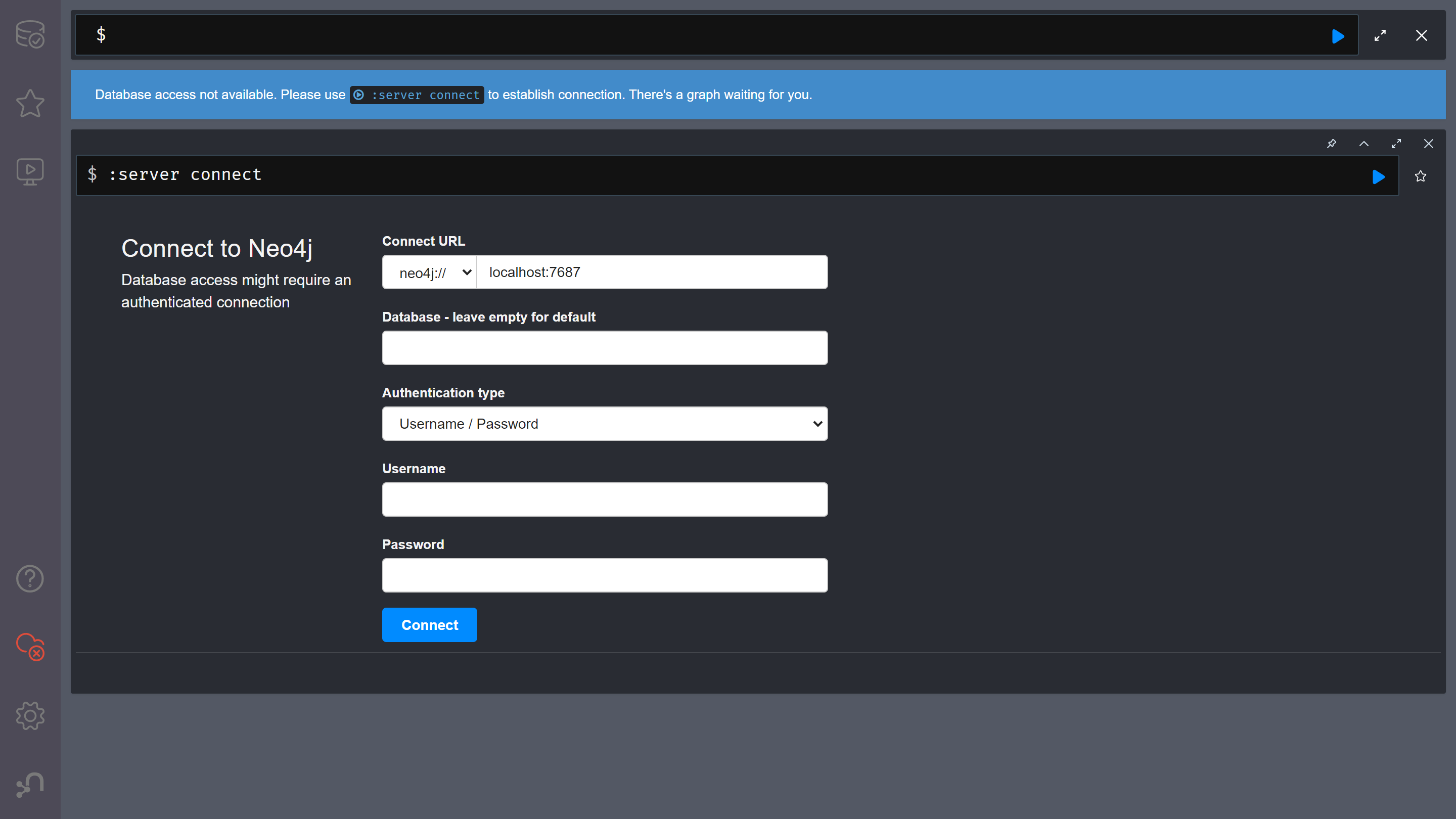 http://localhost:7474/にアクセスすると、Neo4jの管理画面が表示されます。